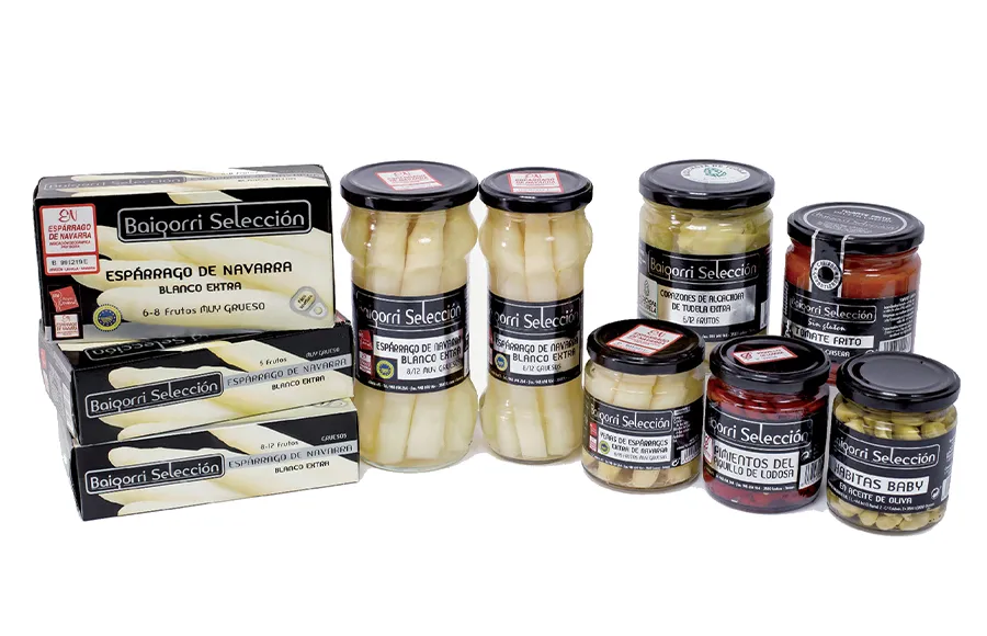 Piquillo de Lodosa y Espárrago de Navarra con sellos oficiales. Conservas con sabor uniforme y controles rigurosos que certifican su calidad y autenticidad en cada lote.